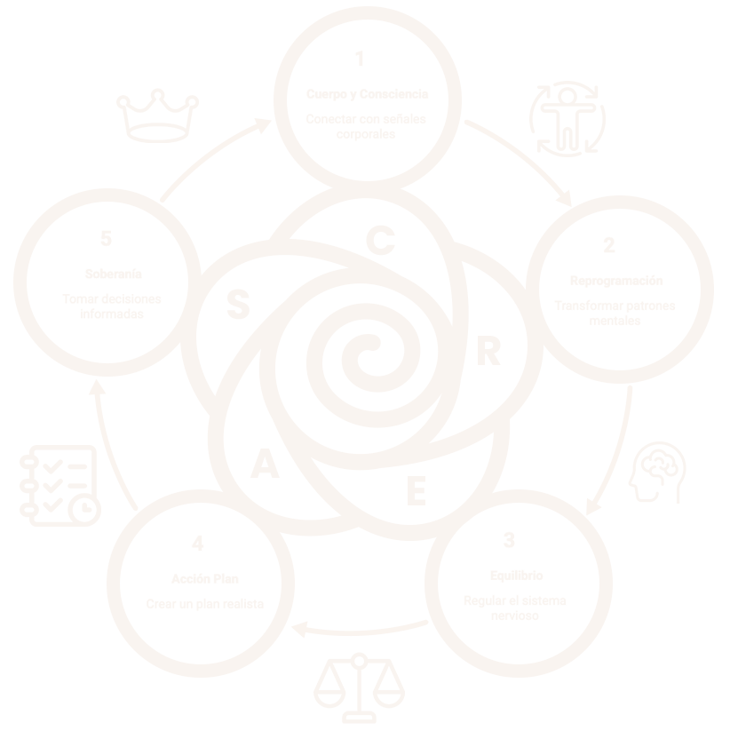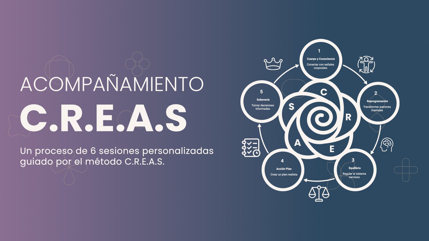 Este servicio es un proceso de 6 sesiones personalizadas con Rosa Agüera, guiado por el método C.R.E.A.S., para ayudarte a reconectar con tu salud desde la raíz, comprender qué hay detrás de lo que estás viviendo (a nivel emocional y biológico) y avanzar hacia decisiones más libres y responsables sobre tu bienestar.