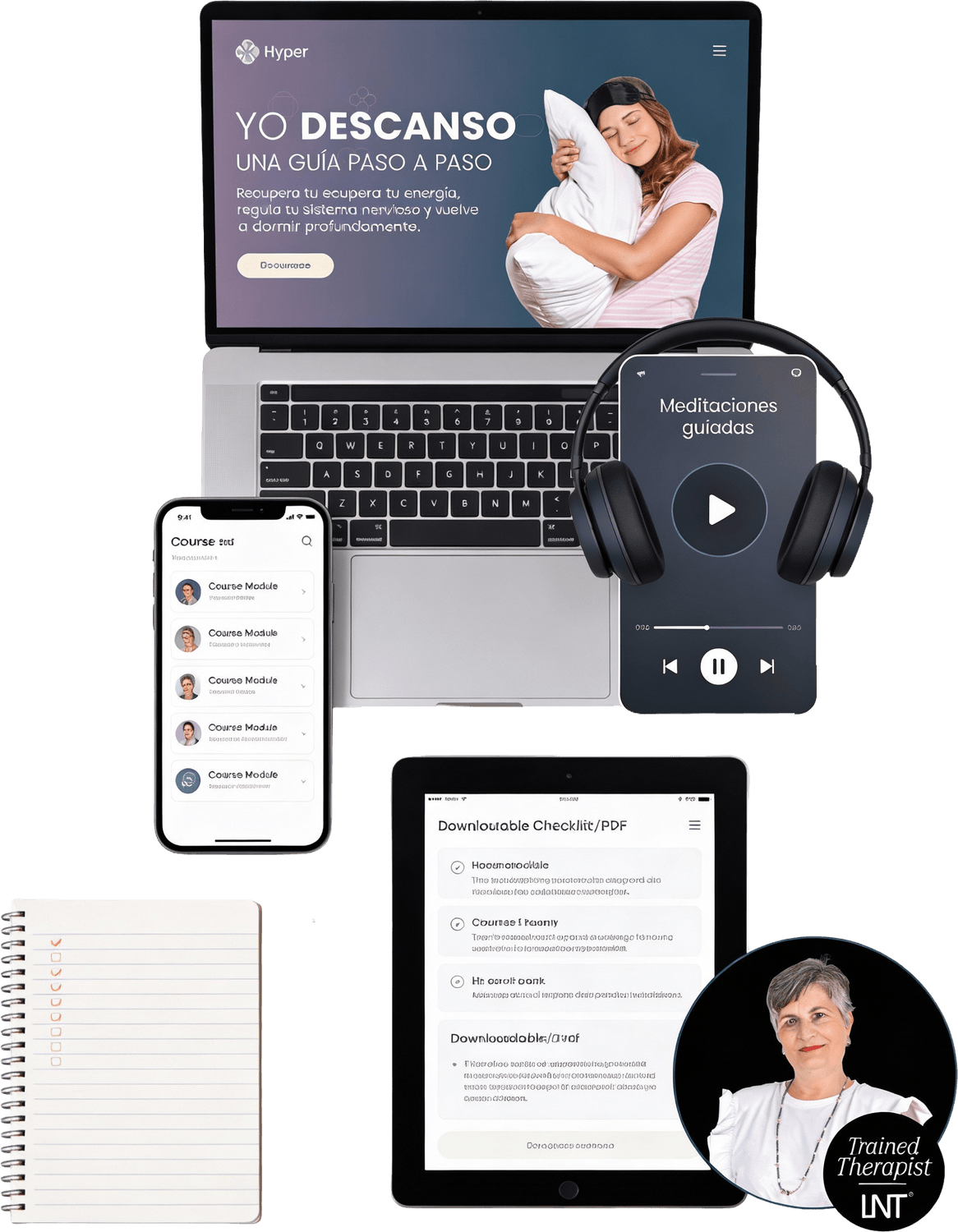 Curso completo online + ejercicios descargables + checklists + rutinas + ritual de cierre.